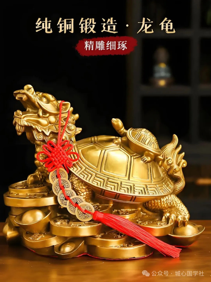 瑞兽一种,主吉祥招财,化三煞。龙龟放在财位可催财,放在三煞位或水气较重之地最有效,风水学有云:“要快发,斗三煞”。